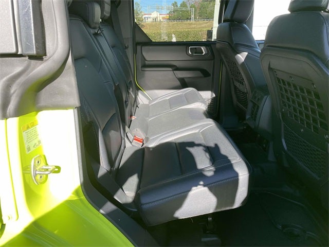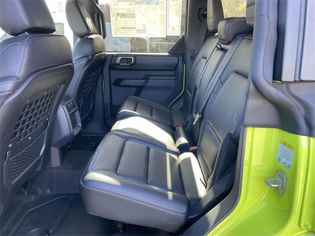 RTR Spacer Lift, FOX 2.5 Performance Elite Coil-Over, RTR Bronco Wheels (5), 37 inch Premium Mud Terrain Tires (Exch) with Max Tire Clearance, Tire Pressure Monitoring System, RTR Fender Badges, RTR Custom Grille Replacement, RTR High-Clearance Exhaust, RTR All Weather Floorliners, RTR Rear Molle Mounting Plate, RTR Key Fob Clamshell, RTR Tailgate Stop, Serialized RTR Dash Plaque, Bronco Badlands RTR, 4D Sport Utility, 2.7L EcoBoost V6, 10-Speed Automatic, 4WD, RTR Hyper Lime, Black Onyx w/Unique Vinyl Bucket Seats, 2-Door Intelligent Access w/Lock/Unlock, 360-Degree Camera, 4.46 Axle Ratio, Adaptive Cruise Control, Ambient Footwell Lighting, Connected Navigation, Dr & Pass Illuminated Sliding Visor Vanity Mirrors, Dual Smart Charging USB Ports, Dual-Zone Electronic Automatic Temperature Control, Equipment Group 334A Lux Package, Evasive Steering Assist, Front Parking Sensors, Front Row Heated Seats, Heated steering wheel, Illuminated entry, Information on Demand Panel, Power Outlet - Back Side of Center Floor Console, Radio: B&O Sound System by Bang & Olufsen, Rear Parking Sensors, Sideview Mirrors, SYNC 4, Universal Garage Door Opener.