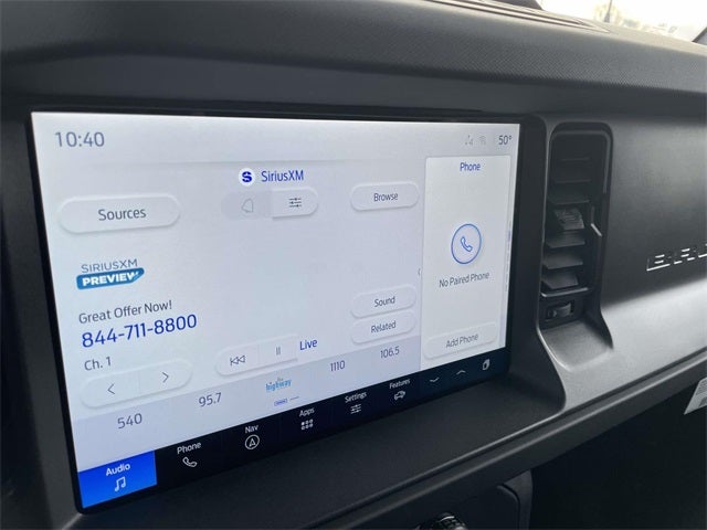 Spacer Lift (Non-Sasquatch And Non-Badlands Model Only), RTR Bronco Wheels (5), 35 inch Premium All Terrain Tires (Exch), Tire Pressure Monitoring System, RTR Fender Badges, Custom Grille Replacement, RTR All Weather Floorliners, Custom Graphics Package, RTR Rear Molle Accessory Plate, RTR Key Fob Clamshell, RTR Tailgate Stop, Serialized RTR Dash Plaque, RTR High-Clearance Exhaust, Bronco Badlands RTR, 4D Sport Utility, 2.7L EcoBoost V6, 10-Speed Automatic, 4WD, Desert Sand, Black Onyx w/Marine Grade Vinyl Heated Bucket Seats, 360-Degree Camera, Adaptive Cruise Control, BLIS Blind Spot Information System, Equipment Group 334A Lux Package, Evasive Steering Assist, Front Parking Sensors, Information on Demand Panel, Radio: B&O Sound System by Bang & Olufsen, Sideview Mirrors, Universal Garage Door Opener.