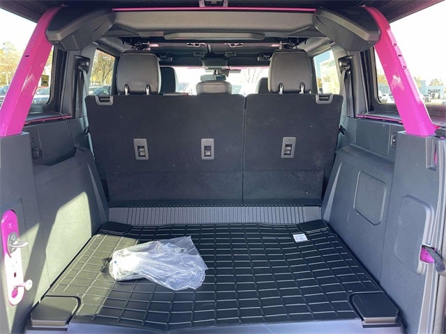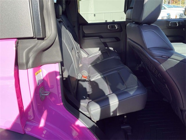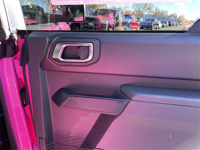 RTR Spacer Lift, FOX 2.5 Performance Elite Coil-Over, RTR Bronco Wheels (5), 37 inch Premium Mud Terrain Tires (Exch) with Max Tire Clearance, RTR Fender Badges, RTR High-Clearance Exhaust, Front Upper Control Arm Kit, RTR All Weather Floorliners, RTR Custom Grille Replacement, RTR Rear Molle Mounting Plate, RTR Key Fob Clamshell, RTR Tailgate Stop, Bronco Badlands RTR, 4D Sport Utility, 2.7L EcoBoost V6, 10-Speed Automatic, 4WD, Pink, Black Onyx w/Marine Grade Vinyl Bucket Seats, 2-Door Intelligent Access w/Lock/Unlock, 360-Degree Camera, 4.46 Axle Ratio, Adaptive Cruise Control, Ambient Footwell Lighting, Auto High-beam Headlights, Connected Navigation, Dr & Pass Illuminated Sliding Visor Vanity Mirrors, Dual Smart Charging USB Ports, Dual-Zone Electronic Automatic Temperature Control, Equipment Group 334A Lux Package, Evasive Steering Assist, Front Parking Sensors, Front Row Heated Seats, Fully automatic headlights, Heated front seats, Information on Demand Panel, Navigation System, Power Outlet - Back Side of Center Floor Console, Radio: B&O Sound System by Bang & Olufsen, Rear Parking Sensors, Sideview Mirrors, SYNC 4, Universal Garage Door Opener.