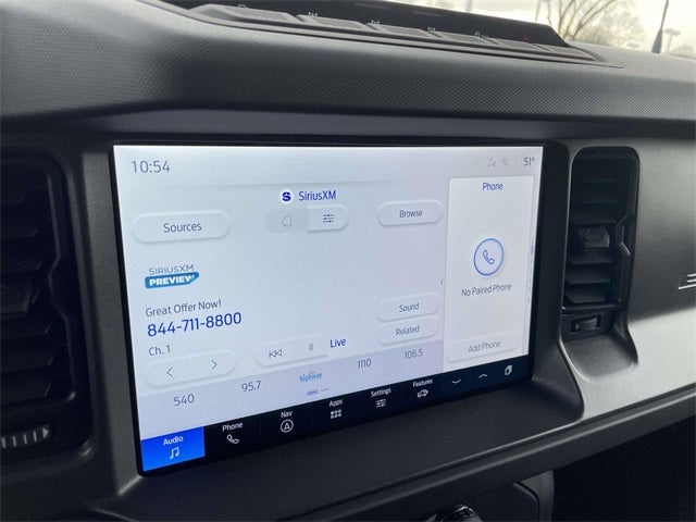 Spacer lift, RTR Bronco Wheels, 35 Premium All Terrain Tires, RTR Fender Badges, Custom Grille Replacement, RTR All Weather Floormats, Custom Graphic Package, RTR Rear Molle Accessory, RTR Key Fob Clamshell, RTR Tailgate Stop, RTR High Clearance Exhaust, RTR Light Bar with (5) PROJECT X Off-Road FF.70 Spot Lights, RTR Rear Bumper, RTR Rock Sliders, Bronco Badlands RTR, 4D Sport Utility, 2.7L EcoBoost V6, 10-Speed Automatic, 4WD, Shadow Black, Black Onyx w/Marine Grade Vinyl Bucket Seats, 360-Degree Camera, 4.7 Final Drive Ratio, Adaptive Cruise Control, Air Conditioning, Auto High-beam Headlights, Equipment Group 334A Lux Package, Evasive Steering Assist, Ford Performance Heavy-Duty Modular Front Bumper, Front Parking Sensors, Fully automatic headlights, Heated front seats, Heated steering wheel, High Clearance Fender Flares, High Clearance Suspension, Illuminated entry, Information on Demand Panel, Position-Sensitive Bilstein Shock Absorbers, Radio: B&O Sound System by Bang & Olufsen, Remote keyless entry, Sasquatch Package, Sideview Mirrors, SYNC 4, Universal Garage Door Opener.
