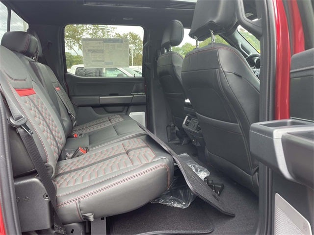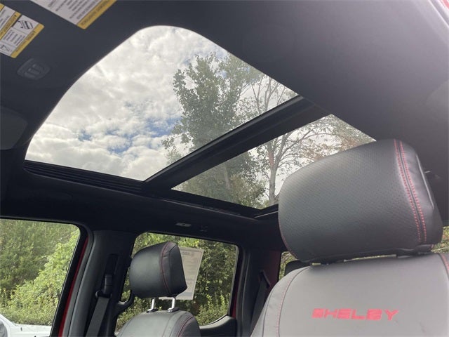 Extended Range 36gal Fuel Tank, BLUECRUISE EQUIP: 90DAY TRIAL, 4 - 22 SHELBY ALLOY WHEELS, 4 - BFG ALL-TERRAIN KO2 35/12.50R22 TIRES, BDS SUSPENSION LIFT BY SHELBY, SHELBY EXCLUSIVE FOX SHOCK SYSTEM, SHELBY SPEEDO RECALIBRATOR, POWER RUNNING BOARDS WITH ROCK GUARD TRIM AND ENTRY LIGHTS, BODY COLOR SMOOTH FENDER FLARES, FUNCTIONAL PAINTED FRONT FENDER VENTS WITH SHELBY LOGO, SHELBY ROCKER PANEL GRAPHICS, PAINTED CUSTOM FRONT BUMPER COVER, REPLACEMENT CUSTOM GRILLE WITH CUSTOM PAINT, SHELBY FUNCTIONAL REPLACEMENT DUAL INTAKE RAM AIR HOOD, SHELBY FULL BODY RALLY STRIPES, SHELBY LETTERING ON TAILGATE, SHELBY REGISTRY ENGINE PLAQUE, SHELBY ENGINEERED 785 HP SUPERCHARGER, SHELBY PERFORMANCE PROGRAMMER TUNED TO 785HP, LIMITED EDITION NUMBERED PLATE: # 25ST0550, F-150 Lariat SHELBY 785HP SUPERCHARGED, 4D SuperCrew, 5.0L V8, 10-Speed Automatic, 4WD, Rapid Red Metallic Tinted Clearcoat, Black w/ActiveX Trimmed Bucket Seats, 2nd Row Heated Seats, ActiveX Trimmed Bucket Seats (B), Ambient Lighting - Ice Blue Color Only, Auto High-beam Headlights, Automatic temperature control, Black Exterior Badging, Black Grille, Black Taillamp Bezels, Body-Color Front & Rear Bumpers, Body-Color Skull Caps & Door Handles, Console Worksurface, Dark Interior Appliques, Electronic Locking w/3.73 Axle Ratio, Equipment Group 502A High, Fully automatic headlights, Gray Box Side Decal, GVWR: 7,100 lbs Payload Package, Heads-Up Display, Heated front seats, Illuminated Driver & Passenger Visors, Illuminated entry, Lariat Black Appearance Package, Matte Black Tailgate F-150 Decal, Memory seat, Mobile Office Package, Navigation system: Connected Navigation, Partitioned Lockable Rear Storage, Pedal memory, Power-Sliding Rear Window, Radio: B&O Unleashed Sound System by Bang & Olufsen, Rain sensing wipers, Remote keyless entry, Twin Panel Moonroof, Ventilated front seats, Wheels: 20 Gloss Black Painted Aluminum, Wireless Charging.