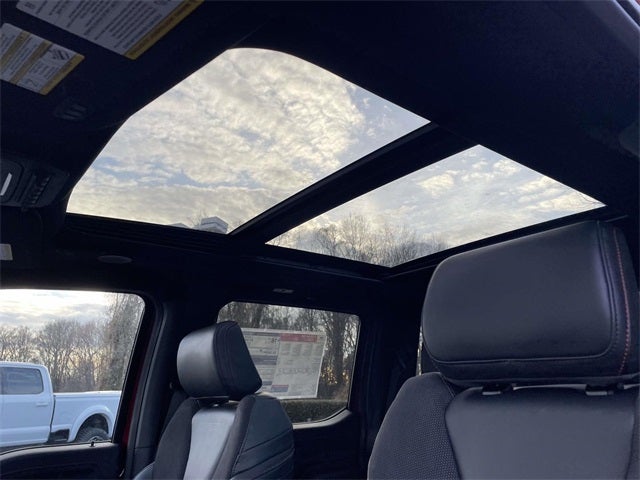 Adaptive Cruise Control, Heads Up Display, BLIS Blind Spot Monitoring w/ Cross Traffic Alert, FOX LIVE VALVE SHOCKS, PRO TRAILER BACKUP ASSIST, SYNC4 W/EVR & 12 SCREEN, TERRAIN MANAGEMENT SYSTEM, F-150 Raptor, 4D SuperCrew, 3.5L V6 EcoBoost, 10-Speed Automatic, 4WD, Rapid Red Metallic Tinted Clearcoat, Black w/RECARO w/Code Orange Stitching Front Seats, Adjustable pedals, Auto High-beam Headlights, Carbon Fiber Interior Appliques, Dual Valve Shocks, Equipment Group 802A Raptor 37, Front dual zone A/C, Fully automatic headlights, Garage door transmitter, Heads-Up Display, Heated front seats, Heated rear seats, Heated steering wheel, Illuminated entry, Internet access capable: FordPass Connect 5G, Memory seat, Modular Front Bumper, Navigation system: Connected Navigation, Radio: B&O Unleashed Sound System by Bang & Olufsen, Rain sensing wipers, RECARO Alcantara Suede Front Seats, Remote keyless entry, SYNC 4 w/Enhanced Voice Recognition, Twin Panel Moonroof, Ventilated front seats, Wheels: Raptor 37 Unique 17 Cast Aluminum.