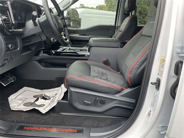 BDS SUSPENSION DESIGNED FOR THE HARLEY- DAVIDSON TRUCK, TUNED FOX PERFORMANCE SHOCKS, 22INCH HARLEY-DAVIDSON BLACK & MILLED WHEELS, 37INCH PREMIUM MUD TERRAIN TIRES (EXCHANGE), BODY COLOR FENDER FLARES, POWER RUNNING BOARDS W/ ROCK GUARD TRIM & ENTRY LIGHTS, BILLET ALUMINUM TIPS W/ ORANGE ACCENTS, CUSTOM DESIGNED FRONT FENDER VENTS W/ BAR & SHIELD LOGO, INTEGRATED LED LIGHT BAR, FULL REPLACEMENT AIR-INDUCTION HOOD W/ TEXTURED HOOD VENT, BUMPER INSERT, COLOR MATCHED REAR BUMPER COVER, GRILLE REPLACEMENT WITH PAINTED ACCENTS, HARLEY-DAVIDSON FRONT BUMPER REDESIGN W/ ACCENTED SKID PLATE, LIMITED EDITION NUMBERED PLATE: # HD 0087, HARLEY-DAVIDSON BILLET PEDALS W/ BAR & SHIELD LOGO, PIANO BLACK ACCENTED CONSOLE, STEERING WHEEL & DASH TRIM, F-250 SuperDuty Lariat HARLEY- DAVIDSON by FOX FACTORY, 4D Crew Cab, 6.7L High Output Power Stroke V8 Diesel, 10-Speed Automatic, 4WD, Oxford White, 4-Way Adjustable Headrests, 410 Amp Dual Alternators, 6 Ebony Black Angular Running Boards, Adjustable pedals, Auto High-beam Headlights, Black Appearance Package, Black Painted Front Grille Surround, Dual AGM 68 AH Battery, Ebony Black Painted Mirror Caps, Engine Block Heater, Ford Connectivity Package (1-Year Included), Fully automatic headlights, Garage door transmitter, Head-Up Display, Heated front seats, Heated rear seats, Heated steering wheel, High Capacity 11.6 Axle Upgrade Package, Illuminated entry, Internet access capable: 5G Modem - Ford Connectivity Package, Lariat Premium Package, Lariat Ultimate Package, Memory seat, Navigation system: Connected Navigation, Order Code 608A, Pedal memory, Power-Deployable Running Boards, Privacy Glass, Pro Trailer Backup Assist, Pro Trailer Hitch Assist, Radio: B&O Unleashed Sound System by Bang & Olufsen, Rain sensing wipers, Remote keyless entry, Twin Panel Power Moonroof, Ventilated front seats.