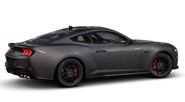 BLIS Blind Spot Monitoring w/ Cross Traffic Alert, MAGNESIUM FRM PNR CURVED DISP, ACTIVE VALVE EXHAUST, BREMBO BRAKE W/PRFM LINING, RED CALIPERS W/WHITE LOGO, Mustang GT Premium, 2D Coupe, 5.0L V8 Ti-VCT, 10-Speed Automatic, RWD, Carbonized Gray Metallic, Black Onyx w/Leather-Trimmed Bucket Seats with Color Accents, 3.55 Limited Slip Rear Axle, Active Anti-Theft System, Aluminum Foot Pedals, AM/FM Stereo, Anti-Theft Package, Auto High-beam Headlights, Automatic temperature control, Black Mirror Caps, Black Painted Wedge Decklid Spoiler, Driver Seat Memory with 3 Settings, Equipment Group 401A High Package, Exterior Parking Camera Rear, Ford Co-Pilot360 Assist+, Ford Connectivity Package (one-Time Purchase - 7 Years), Fully automatic headlights, HD Radio, Leather-Trimmed Bucket Seats with Color Accents, Locking Center Console, Magnesium Framed Panoramic Curved Display, Mustang Nite Pony Package, One-Year Connected Navigation, Perimeter Alarm, Pre-Collision Assist with Automatic Emergency Braking, Rain sensing wipers, Remote keyless entry, SiriusXM with 360L, SYNC 4, Wheel Locking Kit, Wheels: 19 x 8.5 Ebony Black-Painted Aluminum.