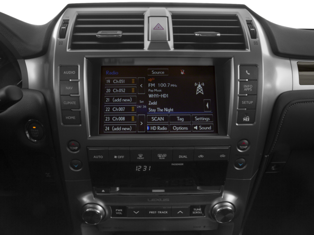 - Radio: AM/FM Lexus Premium Audio -inc: 8" touch screen, 9 speakers, in-dash single CD player w/Automatic Sound Levelizer (ASL), MP3/WMA capability, cache radio, integrated SiriusXM satellite radio receiver (complimentary 90-day trial subscription included), HD Radio real-time traffic and weather, 2 USB ports w/iPod connectivity, Bluetooth® hands free phone w/phonebook download capabilities, music streaming and Siri Eyes Free mode w/select and play music from iTunes, call contacts, hear and compose text messages and emails, hear sports scores, stock information and weather, use maps and get directions (turn-by-turn navigation can be requested through Siri and Apple maps) map displayed on phone screen, perform POI searches, requested search information read back to driver over vehicle audio system, read notifications and read calendar information, add reminders, calendar appointments and notes
