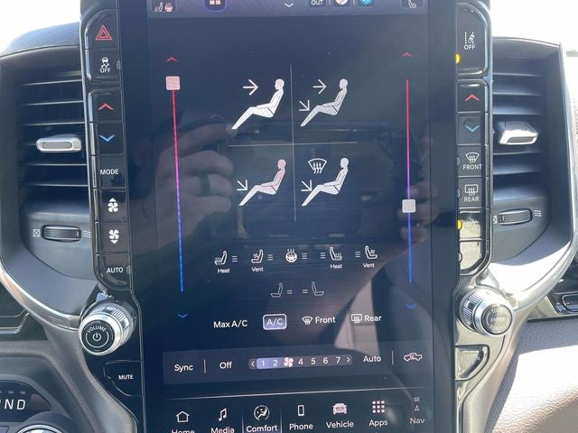 Experience the ultimate in driver-assistance technology with features like Blind Spot Monitoring, Adaptive Cruise Control, and Pedestrian Emergency Braking. Stay connected with the built-in 4G LTE Wi-Fi hotspot and seamless integration of Apple CarPlay and Android Auto. The Laramie's premium leather-trimmed interior, heated and ventilated front seats, and heated steering wheel ensure your comfort is uncompromised.